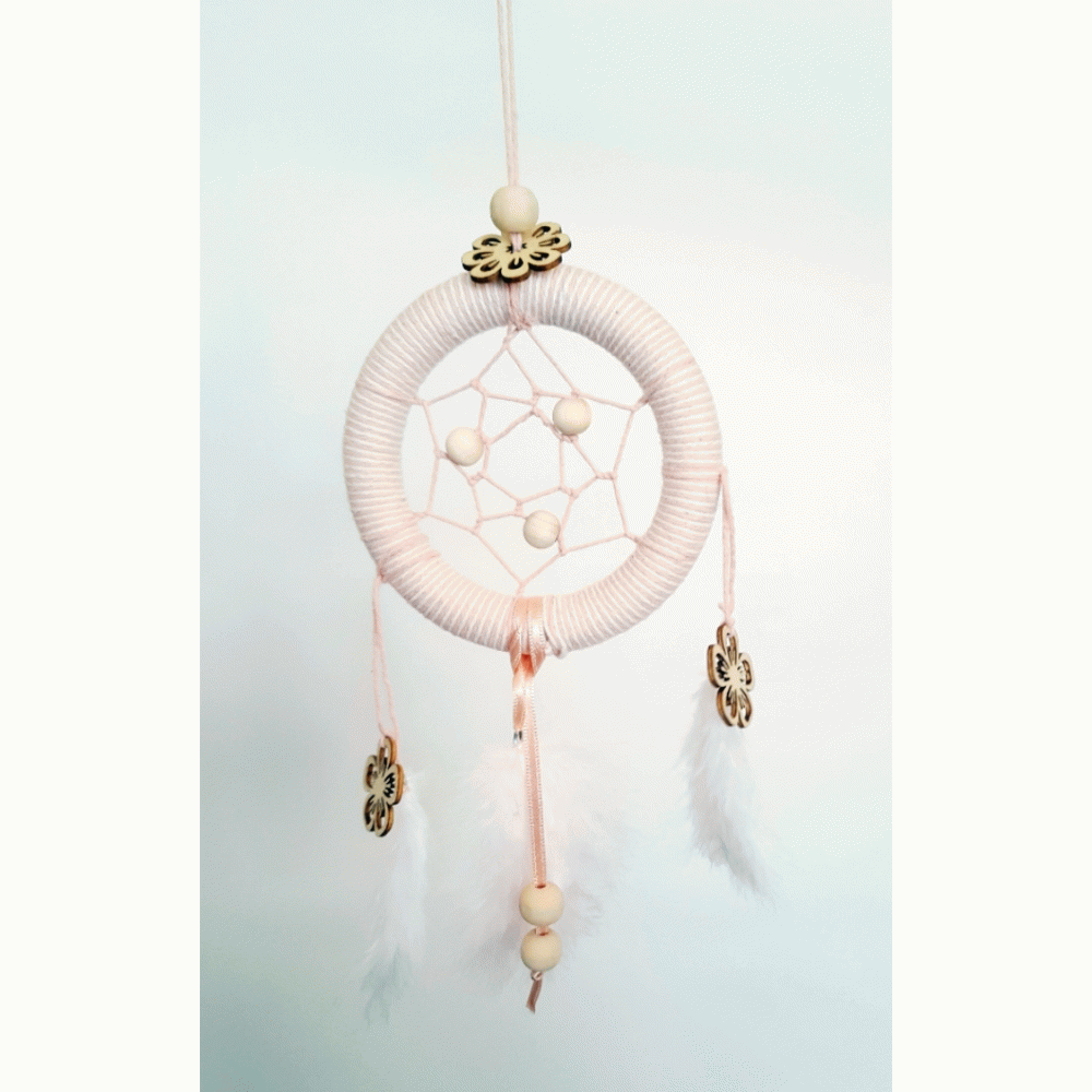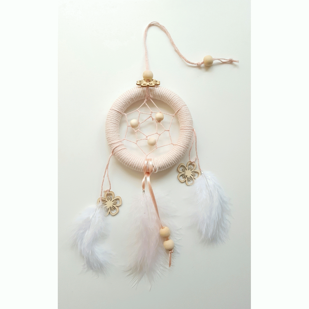 Onder deze prachtige licht roze dromenvanger zal je kindje heerlijk slapen.