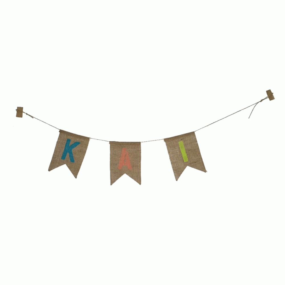Deze leuke slinger bestaat uit jute vlaggen (13X18 cm) en touw.