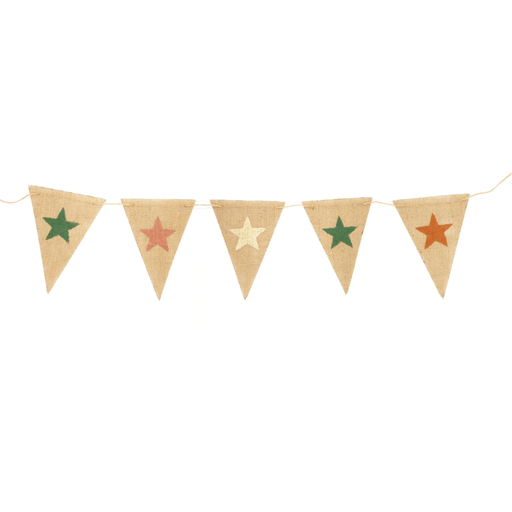 Deze jute vlaggenlijn zal de hele muur opfleuren! De sterren zijn in kleur naar keuze te bepalen.