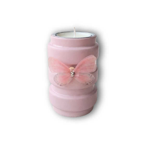 Deze houten kandelaar met vlinder wordt geleverd met waxinelichtje.