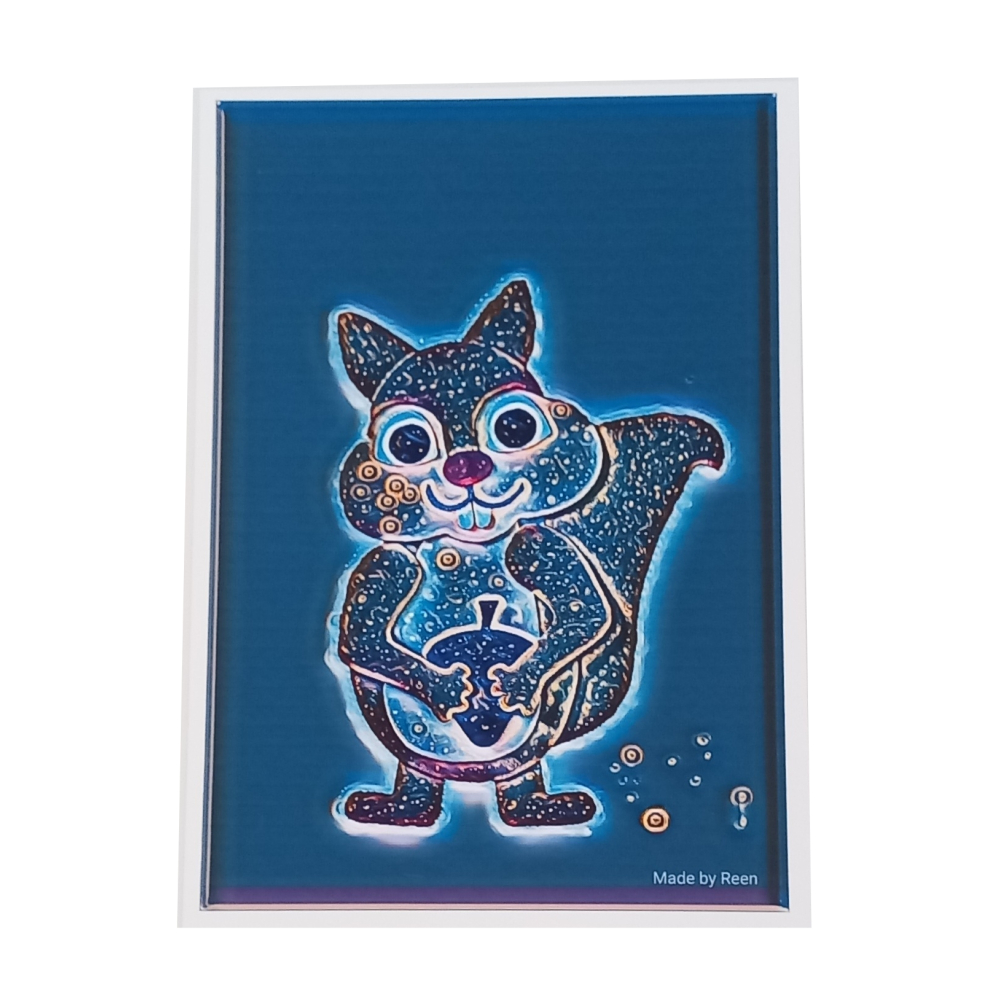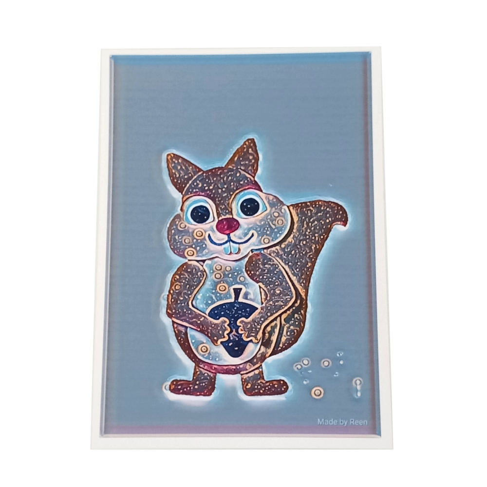 Deze leuke eekhoorn staat te stralen op een poster van A4 formaat. In verschillende uitvoeringen verkrijgbaar.